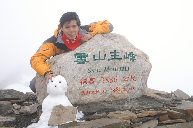 今天上雪山的人很多,一團接一團絡繹不絕,甚至還有遠從日本而來的登山團,不過今天霧鎖峰頂,每個到雪山的山有只能來一張到此一遊、背景白色的紀念照了....