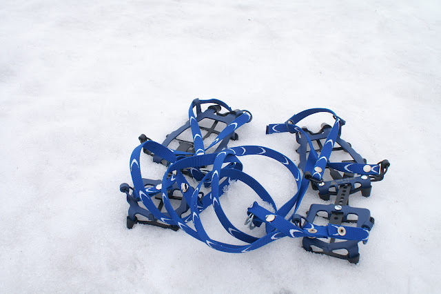 雖然下了雪,不過還沒有結成冰,像是踩在挫冰一樣,滿有趣,而且也滿輕鬆的,花大錢背上去的冰爪,只好放在雪中來一點紀念了....