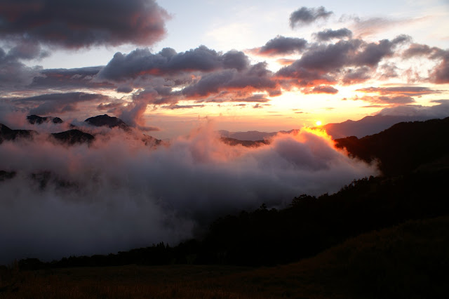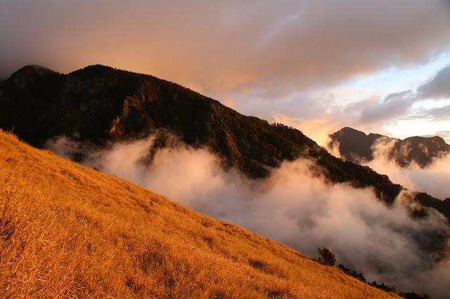 隔天起來,好像是好天氣呢!我獨自坐在七卡後方的草坡上等待日出。那晨曦烘托著雲層調和出來的光華與影彩,顯得太過濃郁而不夠真實。這樣暖暖的色溫應該是那一個博物館的那一幅名畫呢?或要經過多少時光的釀藏才能熟成這樣豐腴璞潤的色彩?也許要一萬年呢。