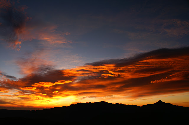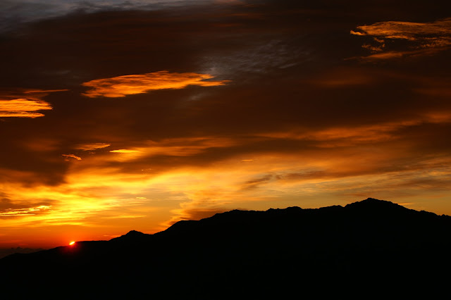 隔天就是下山日了,今天天氣竟然大好,我在雪山東峰頂等著日出,今天的雲彩相當壯觀,好像一展巨大的翅膀,懸在中央山脈的剪影之上。